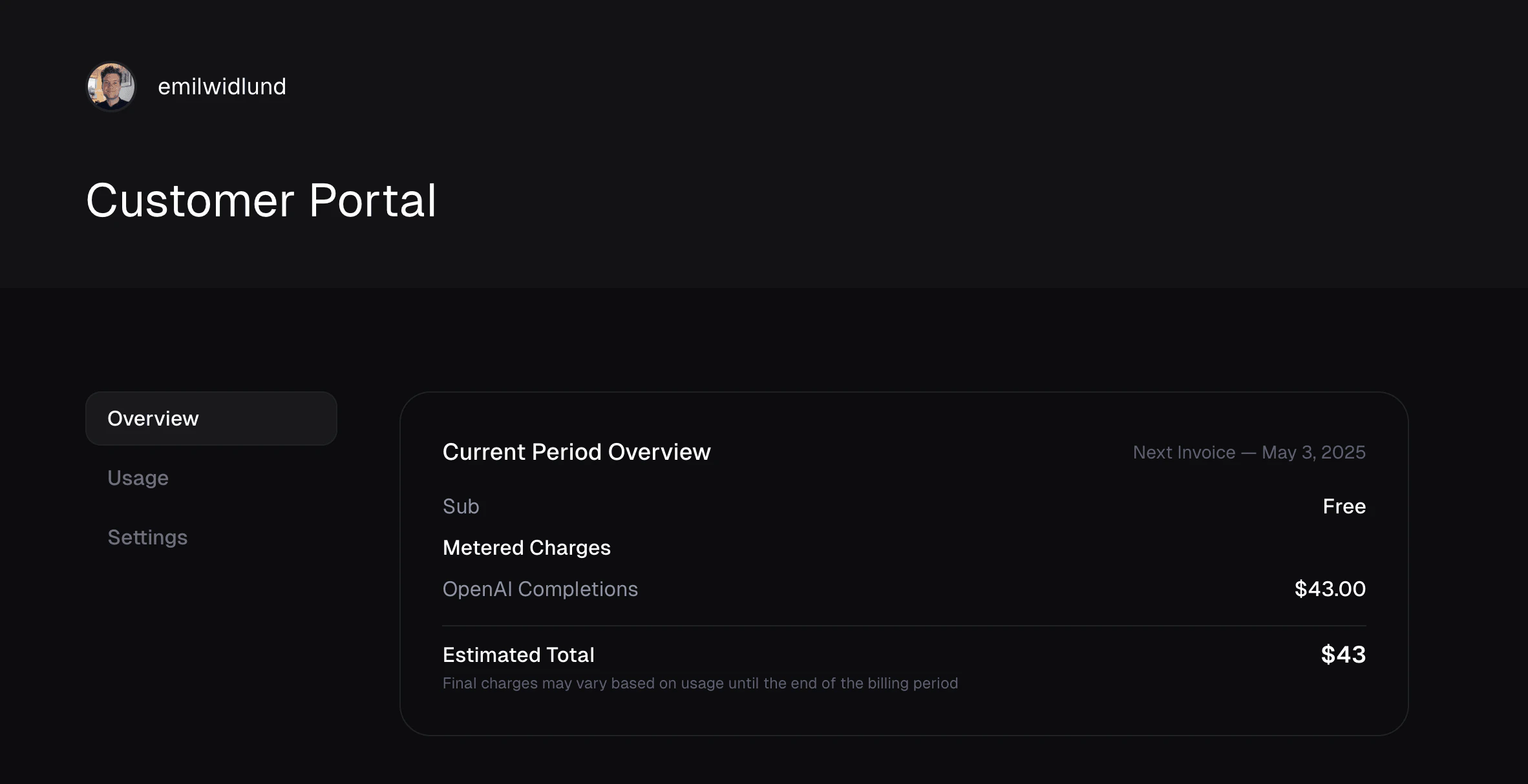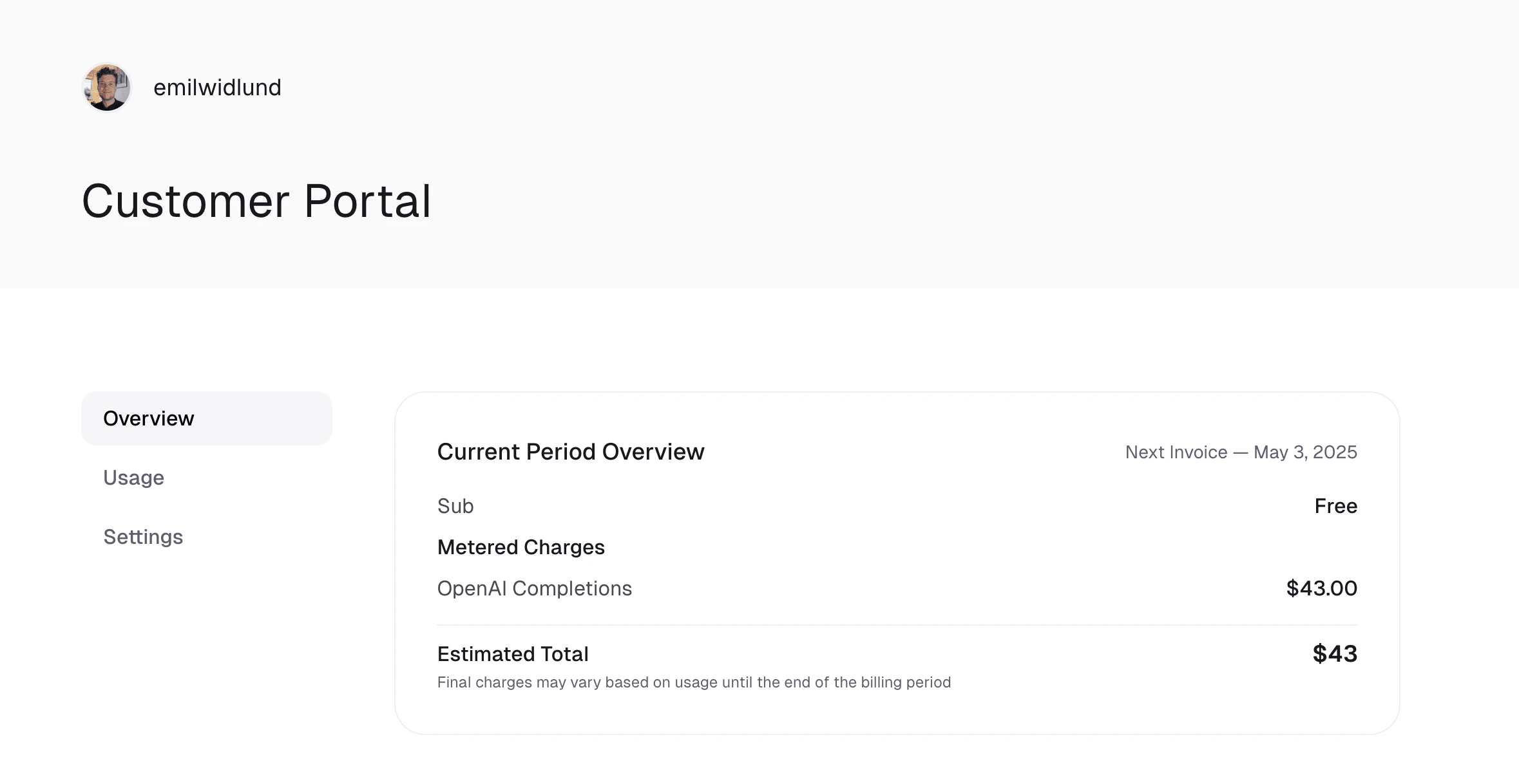 When a subscription is canceled, it generally remains active until the end of the current billing period (known as the grace period). During this grace period, all accumulated usage-based charges continue to be tracked. A final invoice will be issued at the end of that period to cover the consumed usage, even if the subscription will not be renewed. This ensures no pending usage charges are lost.Customer Portal