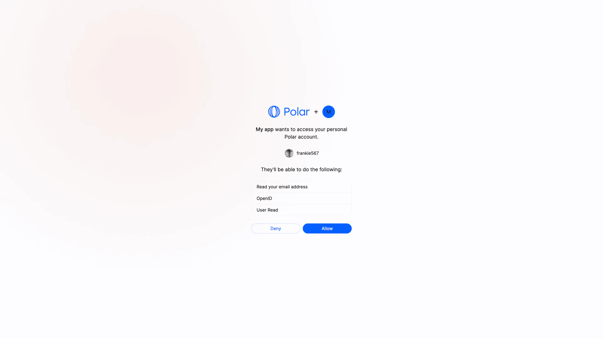 By default, Polar OAuth2 flow generates organization-level access tokens. These tokens are tied to a specific organization rather than a user, allowing requests to operate only on that organization’s data, which improves privacy and security. When using the default flow, the user will be prompted to select one of their organizations before allowing access to their data:sub_type=user to the authorization URL: